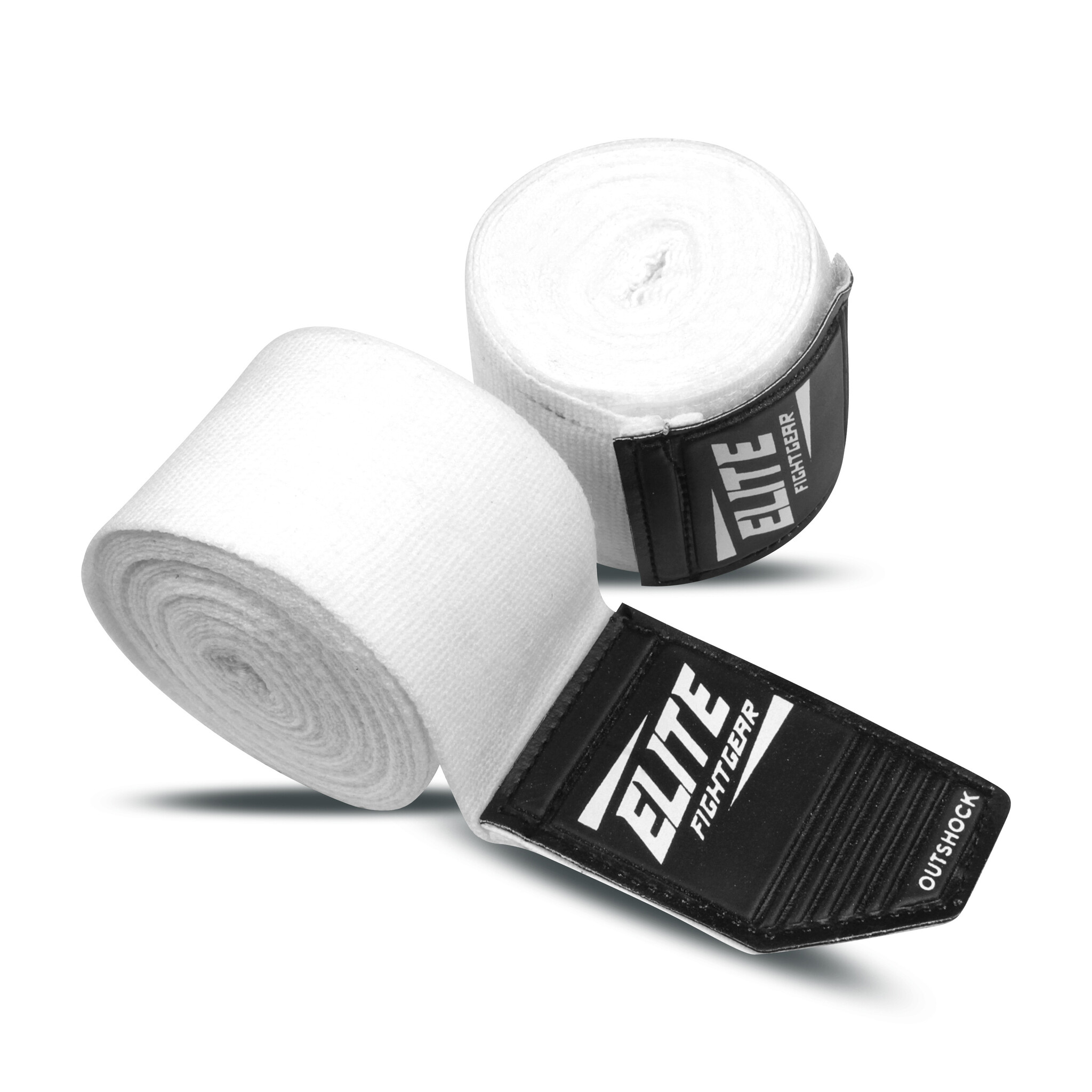 De Elite Pro bandages 500cm zijn semi-elastisch en zijn perfect om uw handen en polsen te ondersteunen en te beschermen tijdens jouw intensieve trainingen en wedstrijden. Deze bandages zijn gemaakt van zacht en ademend katoenmateriaal, waardoor ze comfortabel en gemakkelijk te dragen zijn. Doordat de bandages semi-elastisch zijn kun je de bandages makkelijk zo strak om doen als je zelf wil, om jou de juiste mate van steun te geven die jij nodig hebt. De klittenband is stevig en breed zodat ze goed blijven vastzitten. De handige duimlus zorgt ervoor dat de bandages gemakkeljk aan te trekken zijn. Of je nu bokst, kickbokst of MMA beoefent, Elite Pro bandages zijn een betrouwbare en essentiële uitrusting die je helpen om blessures te voorkomen en optimaal te presteren.